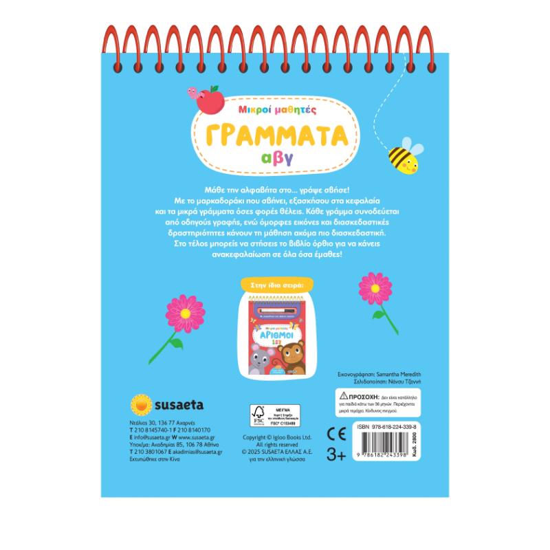 Μάθε τους αριθμούς στο… γράψε σβήσε! Με το μαρκαδοράκι που σβήνει, εξασκήσου στη γραφή των αριθμών όσες φορές θέλεις. Κάθε αριθμός συνοδεύεται από οδηγούς γραφής, ενώ όμορφες εικόνες και διασκεδαστικές δραστηριότητες κάνουν τη μάθηση ακόμα πιο διασκεδαστική. Στο τέλος μπορείς να στήσεις το βιβλίο όρθιο για να κάνεις ανακεφαλαίωση σε όλα όσα έμαθες! Διαστάσεις: 18 x 28 εκ.