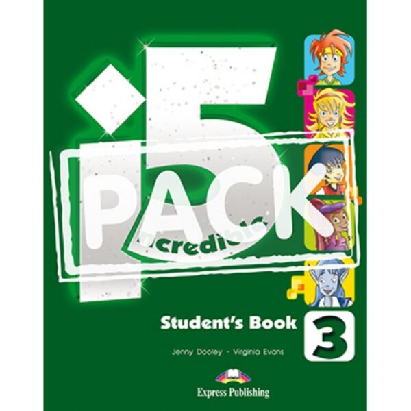 To Βιβλίο i5 3. Incredible 5 3 Πακέτο Student´s Book, Workbook & Grammar, Companion & Grammar Book, multi-ROM (Student’s Audio CD / DVD Video PAL), ieBook αποτελεί μέρος της διδακτικής σειρά i5 (Incredible 5) των εκδόσεων Express Publishing.Η καινούρια διδακτική σειρά εκμάθησης Αγγλικών i5 (incredible 5) των εκδόσεων Express Publishing αποτελείται απο 3 επίπεδα (i5 1, i5 2, i5 3) που αντιστοιχούν στα επίπεδα γλωσσομάθειας A1, A2, B1 και απευθύνεται σε εφήβους. Πρόκειται για μια σειρά που συναρπάζει τους νεαρούς μαθητές ενώ παράλληλα συμβαδίζει με επίπεδα γλωσσομάθειας. Τα βασικά χαρακτηριστικά της σειράς παρουσιάζονται παρακάτωΣυναρπαστικοί διάλογοι που παρακινούν τους μαθητέςΕξάσκηση του γρπατού και του προφορικού λόγου, της ακουστικής κατανόησης καθώς και της κατανόσης κειμένων σε κάθς μάθημαΤραγούδια και παιχνίδιαΑσκήσεις που βοηθούν τους μαθητές να αναπτύξουν τη κριτική σκέψη τους”Πράσινες” ενότητες, που προωθούν το σεβασμό στο περιβάλλονΜύθους και Μυστήρια που σαγηνευόυν τους νεαρούς μαθητές
