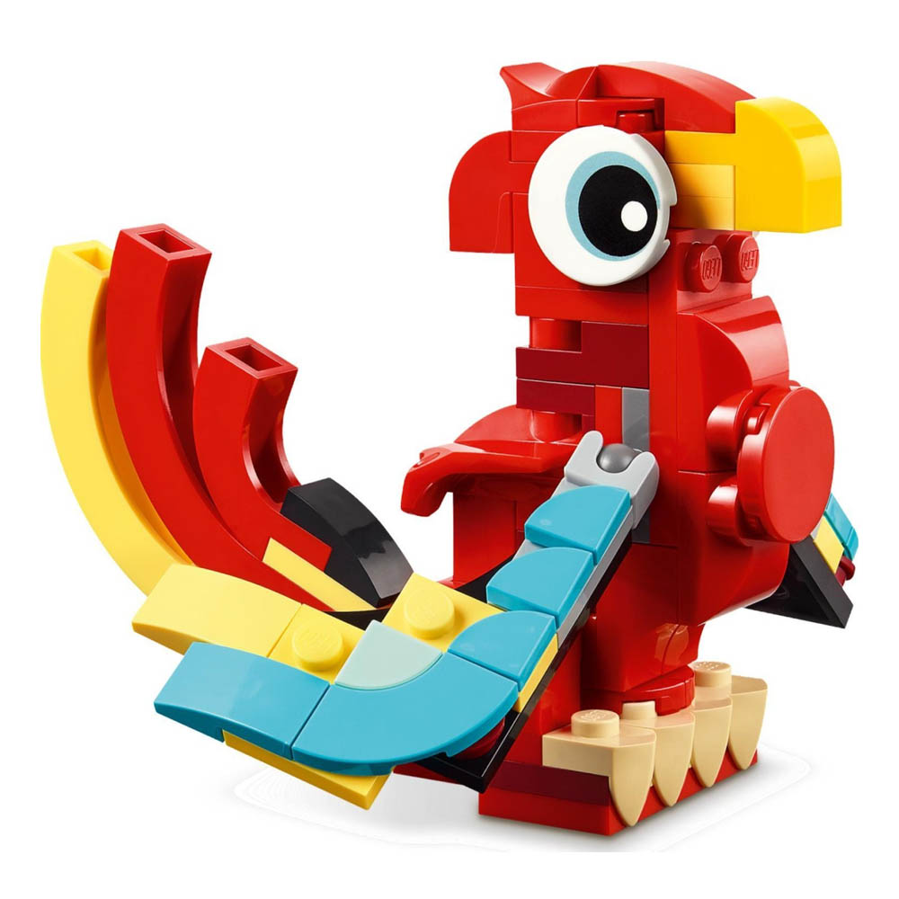 LEGO Creator 3 Σε 1 Κόκκινος Δράκος (31145). Ετοιμάσου για ένα ταξίδι σε μια μαγική και μυστηριώδη χώρα όπου μπορείς να απολαύσεις περιπέτειες με 3 πολύχρωμα ζώα. Κατασκεύασε και διακόσμησε τον χώρο σου με τον εκπληκτικό LEGO® Creator Red Dragon με τα φτερά και τα κέρατά του. Για ακόμα περισσότερη διασκέδαση, μπορείς να ανακατασκευάσεις το μοντέλο σε έναν αξιαγάπητο φοίνικα με έντονα χρωματιστά φτερά ή σε ένα χαριτωμένο ψάρι που κολυμπάει στον βυθό της θάλασσας. Με αυτό το φανταστικό 3σε1 σετ, η επιλογή είναι δική σου! Η συσκευασία περιέχει 149 κομμάτια.