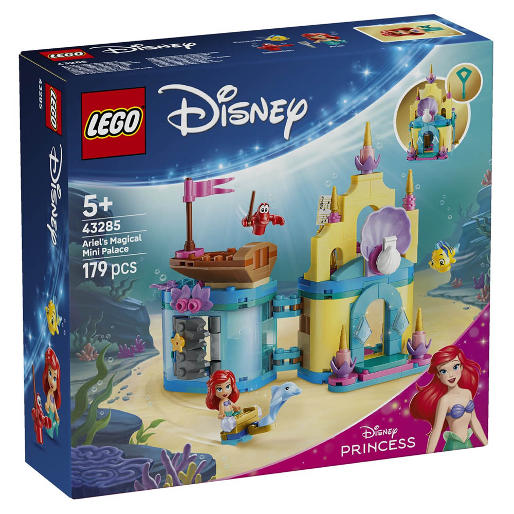 LEGO Disney Ariel’s Magical Mini Palace (43285). Το μικρό κατασκευάσιμο σετ είναι ένα μικρό παιχνίδι που κρύβει έναν ολόκληρο κόσμο μέσα και έξω. Αυτό το LEGO παιχνίδι κατασκευής για κορίτσια και αγόρια διαθέτει 3 LEGO Disney χαρακτήρες: Ariel, Φούσκας και Sebastian, ένα μίνι παλάτι και σπηλιά που κλείνει και κλειδώνει με το κλειδί, μια μικρή βάρκα και πολλά άλλα. Το φορητό παιχνίδι κατασκευής μίνι κάστρου είναι φτιαγμένο για διασκέδαση εν κινήσει. Αυτή η διασκεδαστική ιδέα δώρου είναι ιδανική για κορίτσια ή αγόρια, για γενέθλια ή κάθε περίσταση, και το κατασκευάσιμο κάστρο είναι γεμάτο με χαρακτηριστικά και αξεσουάρ για ατελείωτο παιχνίδι μίμησης. Καθώς δημιουργούν τις δικές τους ιστορίες, τα παιδιά αποκτούν αυτοπεποίθηση και αναπτύσσουν τη φαντασία τους. Επίσης, απολαμβάνουν μια απλή κατασκευή με την εφαρμογή LEGO Builder, ζουμάροντας και περιστρέφοντας με 3D οδηγίες, ενώ αποθηκεύουν και παρακολουθούν την πρόοδο.