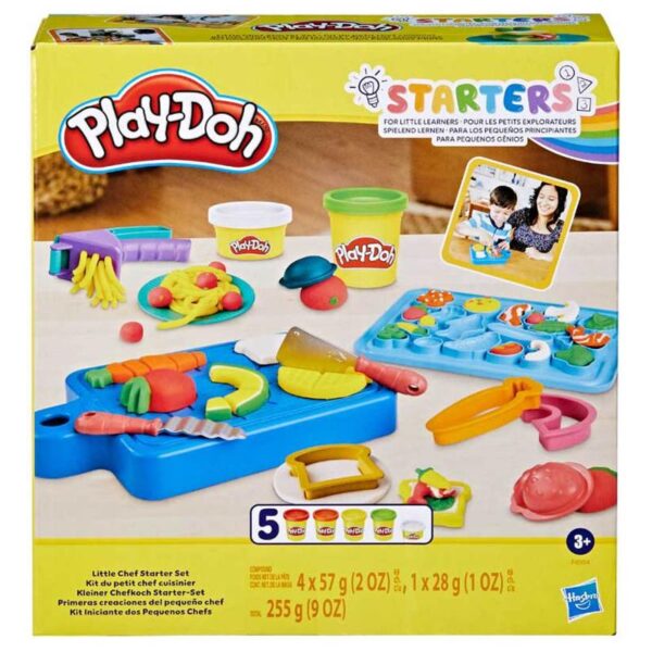 Ας προετοιμαστούμε! Το Play-Doh Kitchen Creations Little Chef Starter Set είναι φτιαγμένο για επίδοξους μάγειρες, με 14 αξεσουάρ κουζίνας play και 5 χρώματα Play-Doh. Τα παιδιά μπορούν να κόψουν σχήματα φαγητού παιχνιδιού χρησιμοποιώντας τα καλούπια και τους κόφτες και, στη συνέχεια, να ακολουθήσουν τις οδηγίες στην σανίδα κοπής του παιχνιδιού για να τα κόψουν σε φέτες και να τα ψιλοκόψουν με τα μαχαίρια! Είτε πρόκειται για το πρώτο τους σετ εκκίνησης Play-Doh είτε για δώρο για παιδιά 3 ετών και άνω, αφήστε τα να ανακαλύψουν τη χαρά των παιχνιδιών Play-Doh!