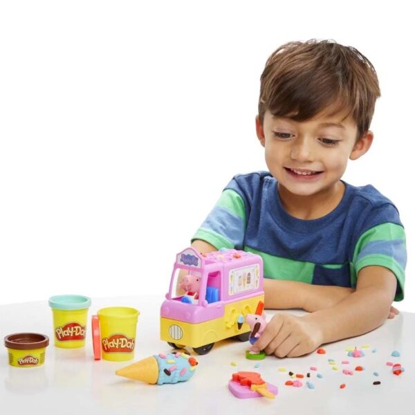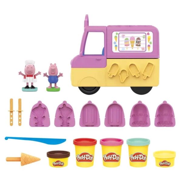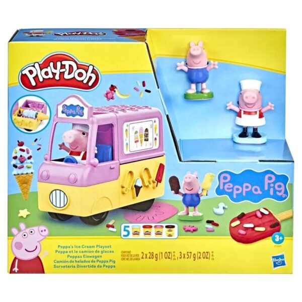 Η Πέππα το Γουρουνάκι και ο αδερφός της ο Τζορτζ είναι έτοιμοι για διασκέδαση Play-Doh με αυτό το σετ χειροτεχνίας και καλλιτεχνικών κατάλληλο για παιδιά ηλικίας 3 ετών και άνω! Το σετ Peppa’s Ice Cream Playset, που περιλαμβάνει ένα φορτηγάκι παγωτού και φιγούρες Πέππα και Τζορτζ, επιτρέπει στα παιδιά να εκδηλώσουν τη δημιουργικότητά τους αναβιώνοντας τις αγαπημένες τους σκηνές από την τηλεοπτική σειρά Πέππα το Γουρουνάκι. Ανακαλύψτε τα καλούπια που συμπεριλαμβάνονται για μοναδικές δημιουργίες. Τα παιδιά μπορούν επίσης να φτιάξουν χωνάκια και ξυλάκια παγωτό Play-Doh, καθώς και αρκουδάκια-λιχουδιές, τοποθετώντας 1 από τα 3 μεγάλα καλούπια στο πίσω μέρος του φορτηγού και γεμίζοντάς το με πλαστοζυμαράκι Play-Doh. Αυτό το σετ συνοδεύεται από 5 δοχεία πλαστοζυμαράκι Play-Doh σε χρώμα κόκκινο, σμαραγδί, ροζ, κίτρινο και καφέ, για άφθονη διασκέδαση με θέμα την Πέππα το Γουρουνάκι. Αυτό το παιχνίδι είναι ιδανικό για παιδικά πάρτι ή συναντήσεις για παιχνίδι, καθώς αποτελεί φανταστικό δώρο γιορτών ή γενεθλίων για τους μικρούς θαυμαστές της Πέππα!