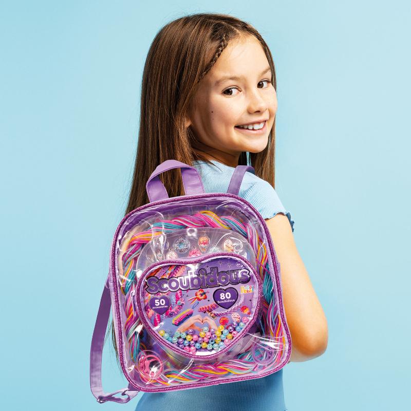 Σακίδιο πλάτης με 80 πολύχρωμα Scoubidous strings, 8 μοδάτα αξεσουάρ, 40 πολύχρωμες χάντρες και 2 μπρελόκ. Δημιουργήστε μοναδικά και πολύχρωμα βραχιολάκια, δαχτυλίδια, μπρελόκ και άλλα αξεσουάρ και κάνετέ τα ακόμα πιο εντυπωσιακά προσθέτοντας πολύχρωμα αξεσουάρ σε μοναδικά σχέδια. Ιδανικό για παιδιά που αγαπούν τις χειροτεχνίες και θέλουν να εκφράσουν τη δημιουργικότητά τους. Διατίθεται σε μοδάτο σακίδιο πλάτης το οποίο διευκολύνει το παιδί να πάρει μαζί του όλα τα Scoubidous και τα αξεσουάρ του και να φτιάξει οπουδήποτε φανταστικά βραχιολάκια παρέα με τους φίλους του. Μπορεί επίσης να χρησιμοποιηθεί για οτιδήποτε άλλο θέλει το παιδί στην καθημερινότητά του και να είναι πάντα στυλάτο.